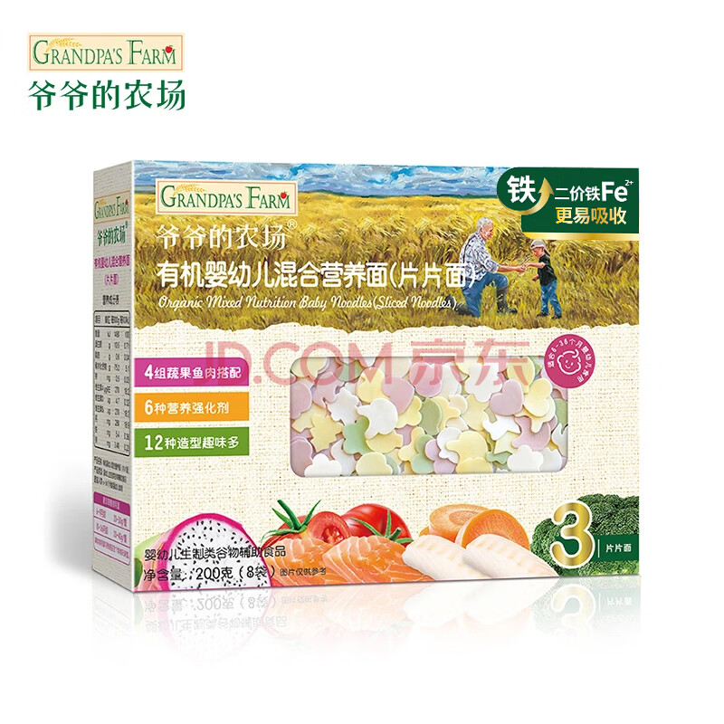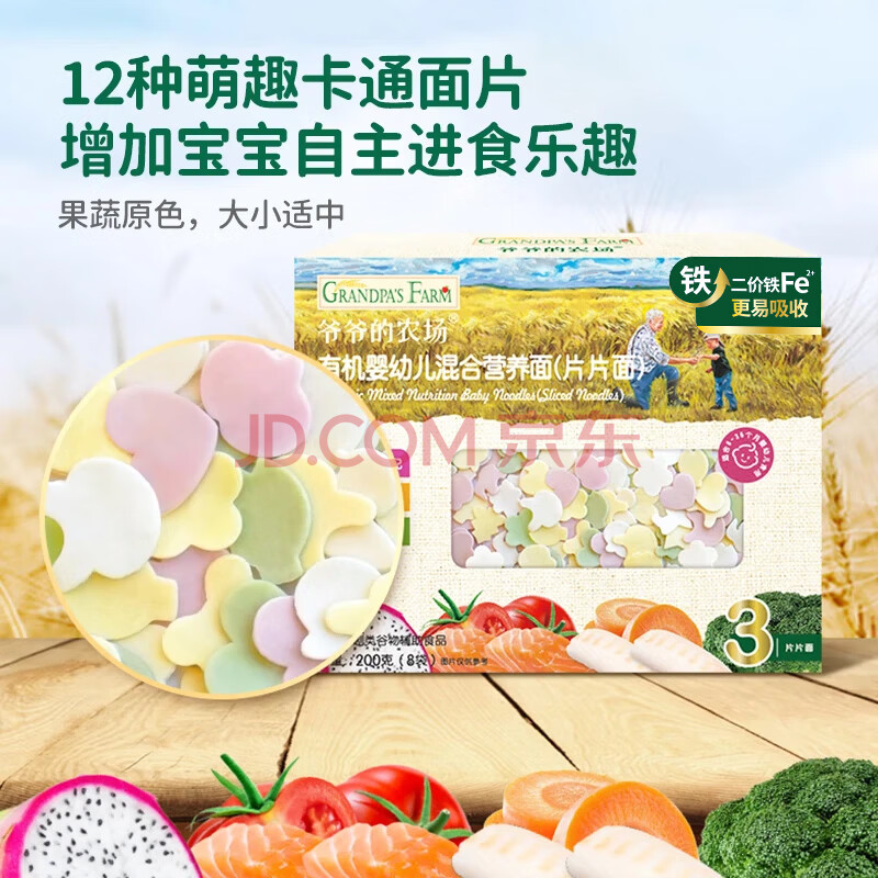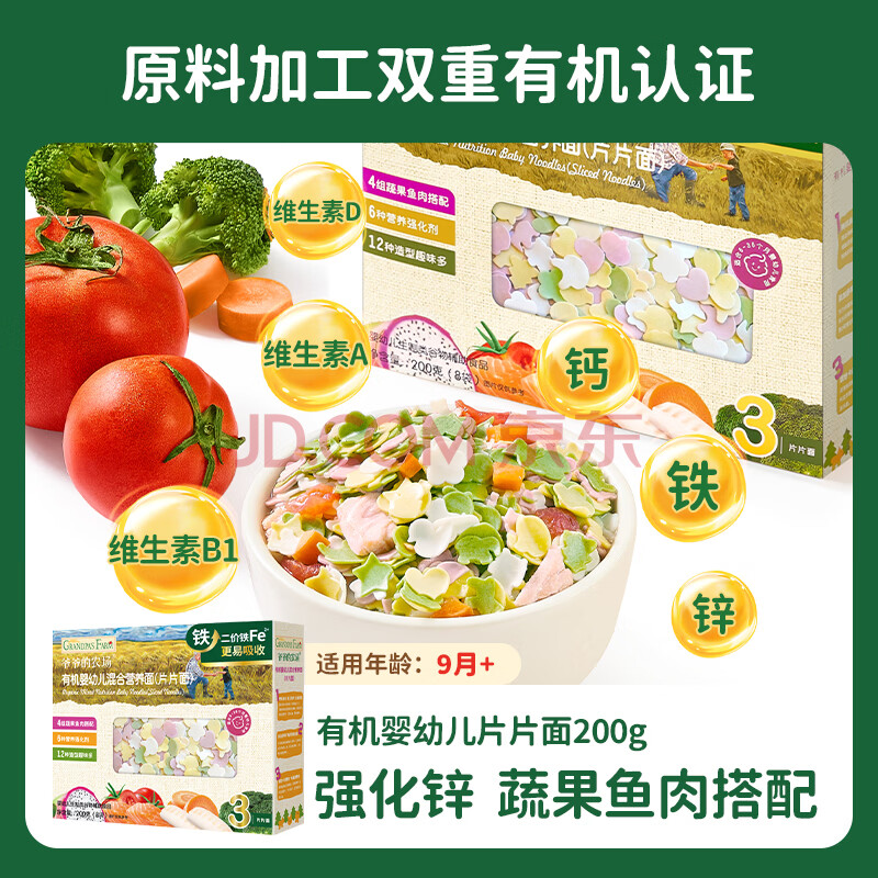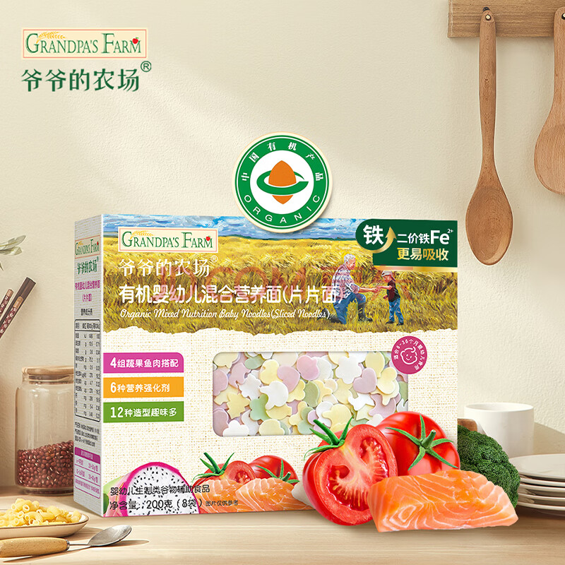 商品相册:爷爷的农场有机婴幼儿片片面200g 宝宝辅食婴儿面条钙铁锌儿童早餐6-12个月第