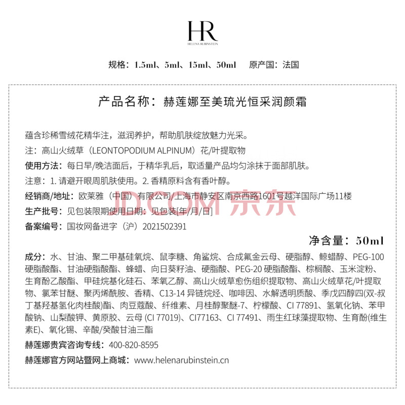 商品相册:赫莲娜HR高光面霜50ml保湿紧致护肤品化妆品礼盒生日礼物送女友第
