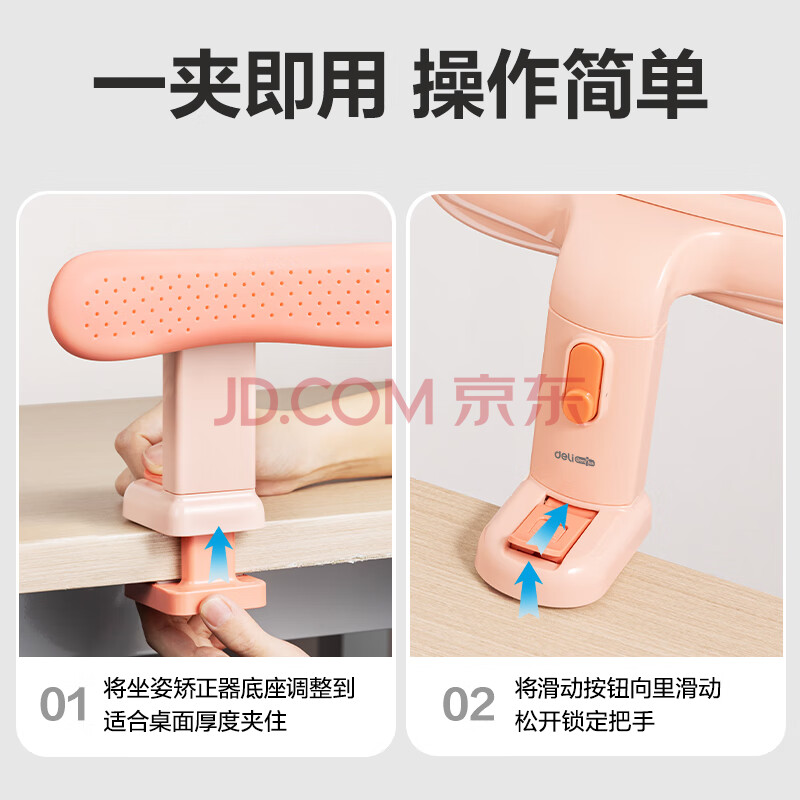 商品相册:得力坐读写坐姿矫正器学生儿童学习写作业预防低头近视驼背纠正姿势一键夹桌开学文具生日礼物粉第