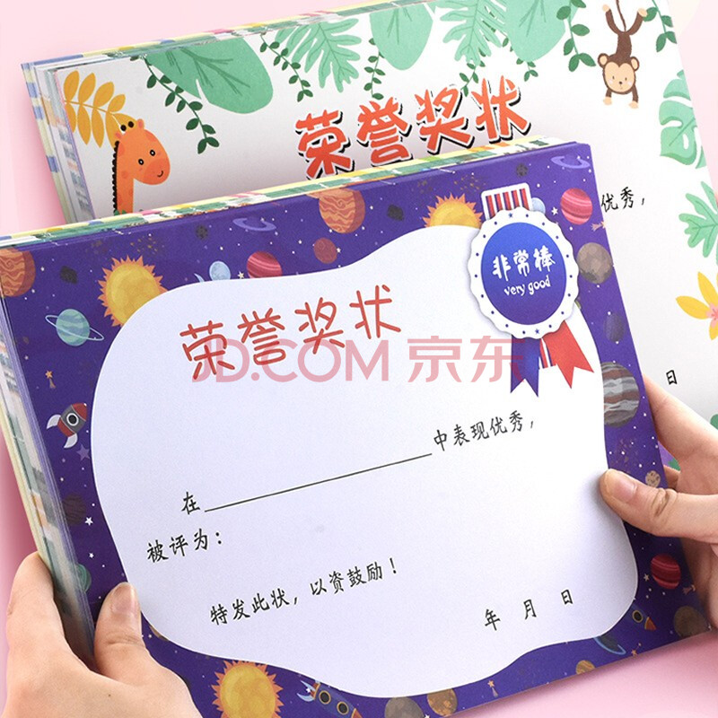 商品相册:誉禾A4卡通奖状纸中小学生加厚双胶纸荣誉奖状奖励卡创意幼儿园学生鼓励用品四款混装/100张 5186第1张/共4