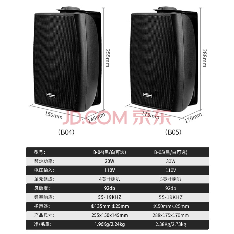 商品相册:威斯汀吸顶音响家庭影院壁挂式音箱 定压喇叭B05黑色一个 学校商用超市店铺公共广播/峰值功率30W第