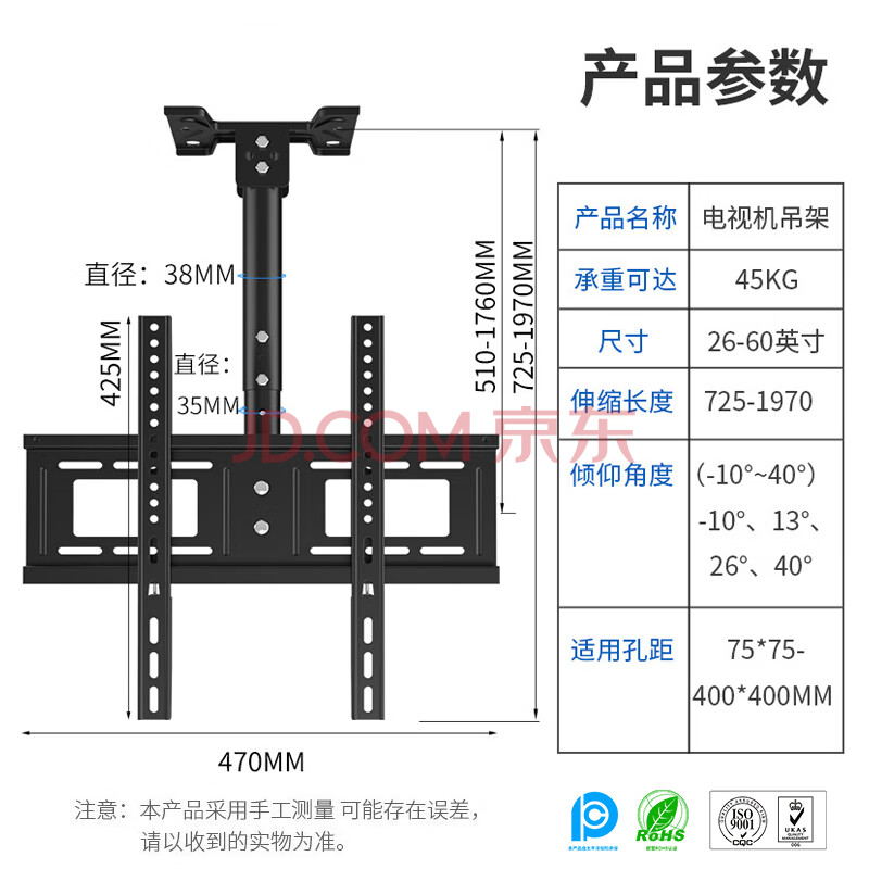 商品相册:ProPre (26-60英寸)2M电视吊架天花板吊顶架挂架液晶电视机旋转上下伸缩吊架多功能显示器监控吊顶支架第1张/共8