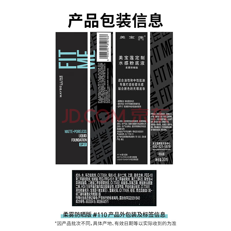 商品相册:美宝莲FITME粉底液混皮小蓝瓶提亮遮瑕控油防晒110 生日礼物女第