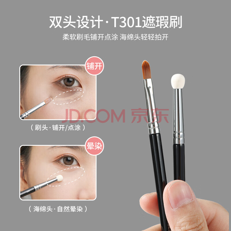 商品相册:优家(UPLUS)毛老师同款细节遮瑕刷2支 T22精细刷+T301海绵双头化妆刷第