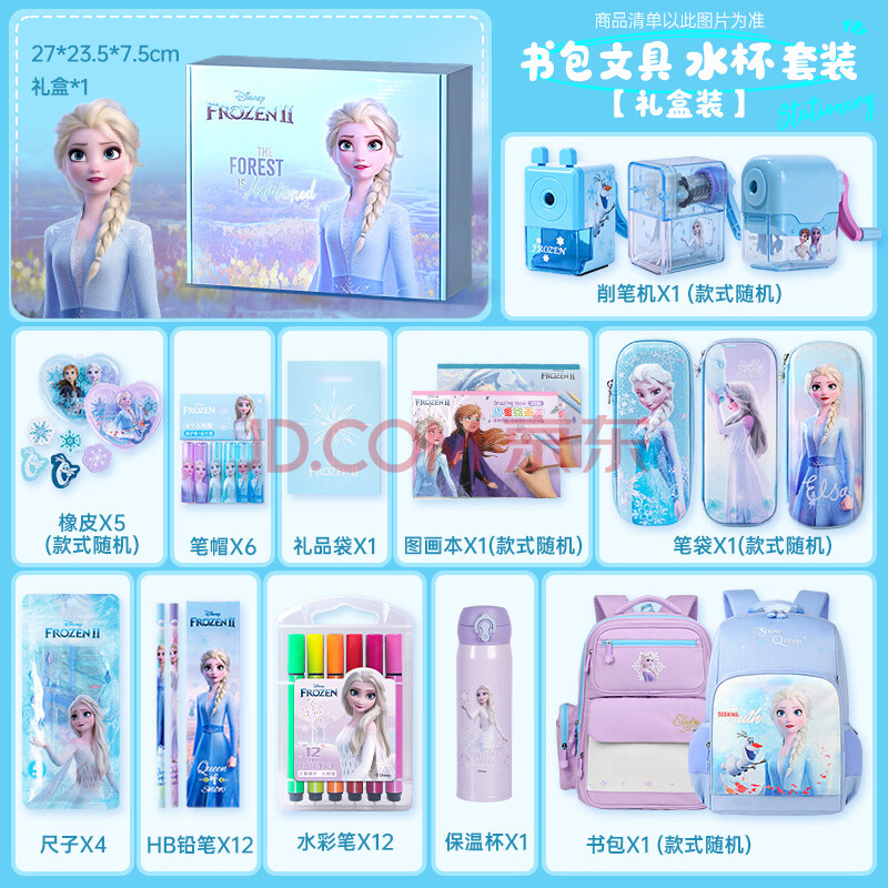 商品相册:迪士尼(Disney)文具套装 小学生书包儿童保温杯文具礼盒 艾莎文具大礼包女孩生日礼物 冰雪奇缘第1张/共9