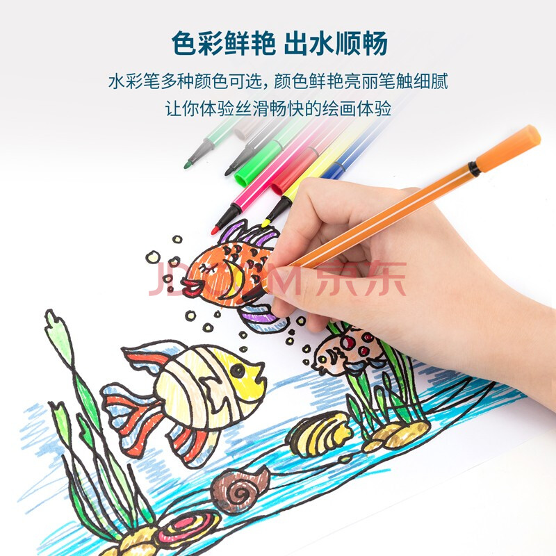 商品相册:得力(deli)水彩笔7060 套装学生多彩可洗水彩笔/绘画笔 幼儿园儿童休闲绘画笔 可洗水彩笔12色蓝筒 第