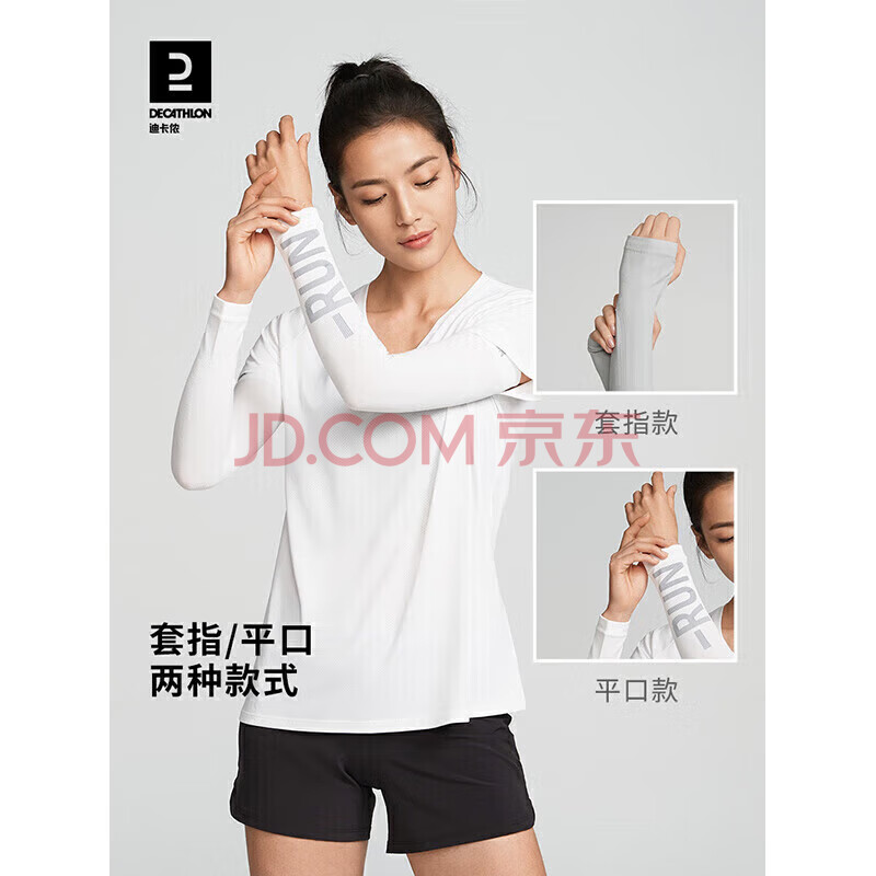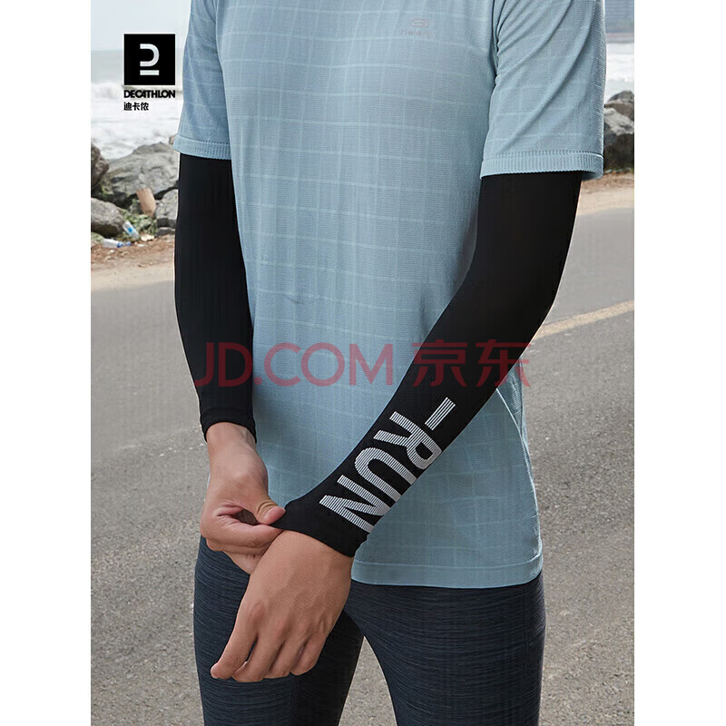 商品相册:迪卡侬袖套女跑步男冰袖手臂套袖子拇指扣款-活力黑均码-4104791第