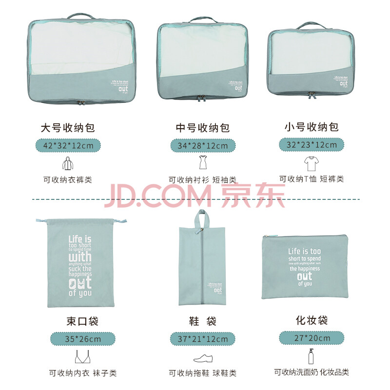 商品相册:艾逸瑶选 逸出行轻羽旅行收纳包六件套 SN-1809-6第1张/共6