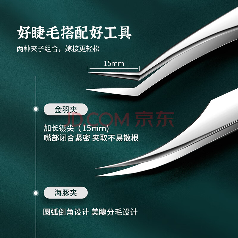 商品相册:优家(UPLUS)精密单簇假睫毛镊子2件(金羽夹+海豚夹)种植嫁接睫毛工具第