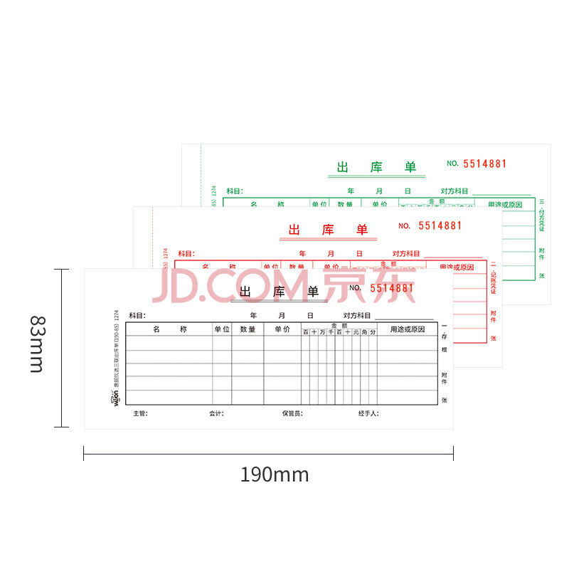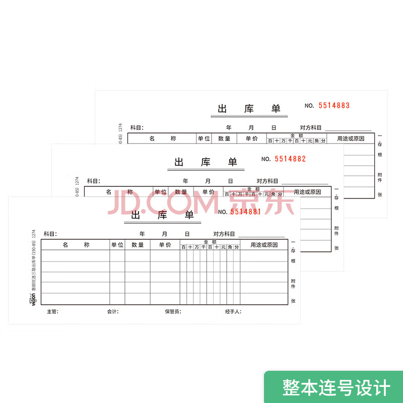 商品相册:惠朗(huilang)三联出库单190*83mm 20组/本 10本/包 自带垫板撕裂线无碳复写48K收据单据系列 1274第