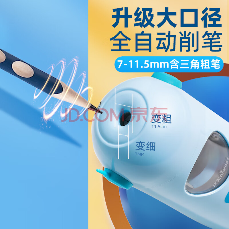 商品相册:天文全自动削笔机器小学生文具大口径卷笔刀可削11.5mm粗杆大三角铅笔转笔刀儿童电动削笔器 哆啦A梦粉第