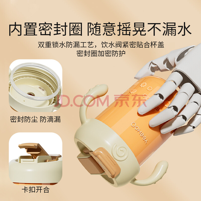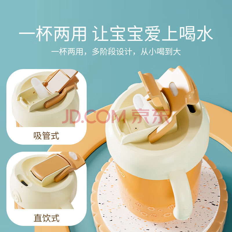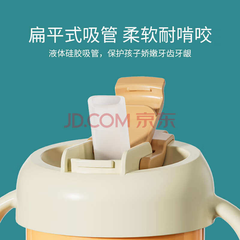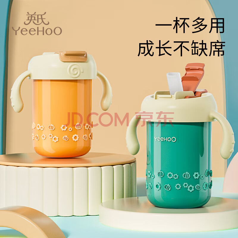 商品相册:英氏(YEEHOO)儿童牛奶杯宝宝水杯不锈钢宝宝吸管泡奶喝水杯学饮杯防摔 森林绿第