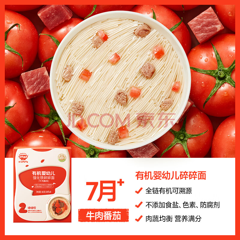 商品相册:秋田满满 有机婴幼儿强化铁碎碎面牛肉番茄味160g 宝宝面条100%真验厂第