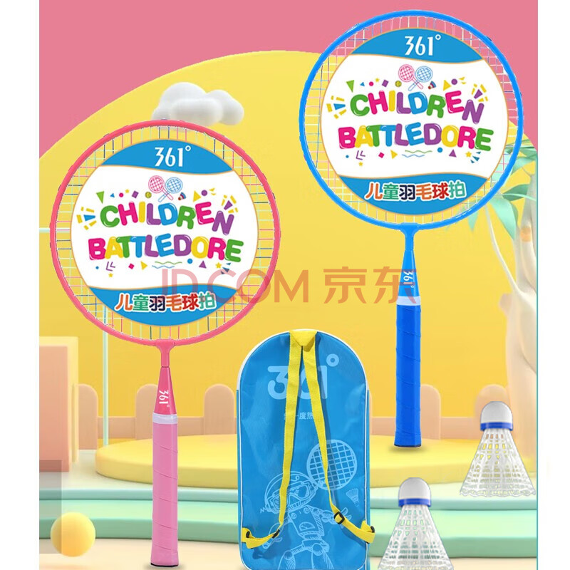商品相册:361°羽毛球拍儿童耐用型球拍3-12岁儿童玩具礼物套装 粉色第
