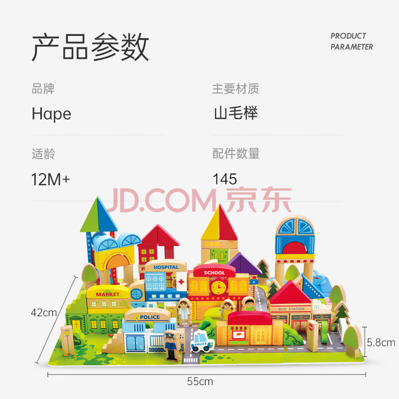 商品相册:Hape(德国)宝宝积木拼搭玩具125粒城市情景积木男女孩生日礼物E8029第1张/共8