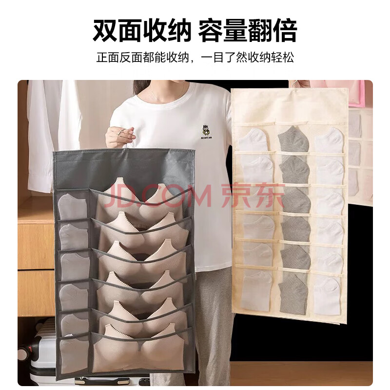 商品相册:班哲尼内衣收纳挂袋袜子内裤挂袋家用宿舍柜子墙挂悬挂式储物袋12+18格第1张/共7