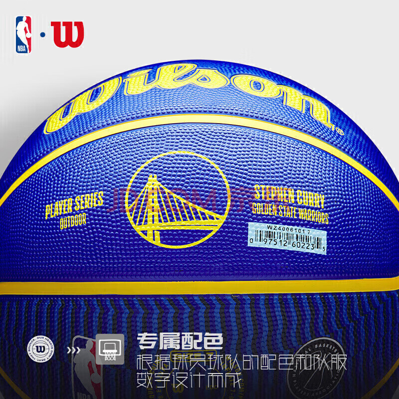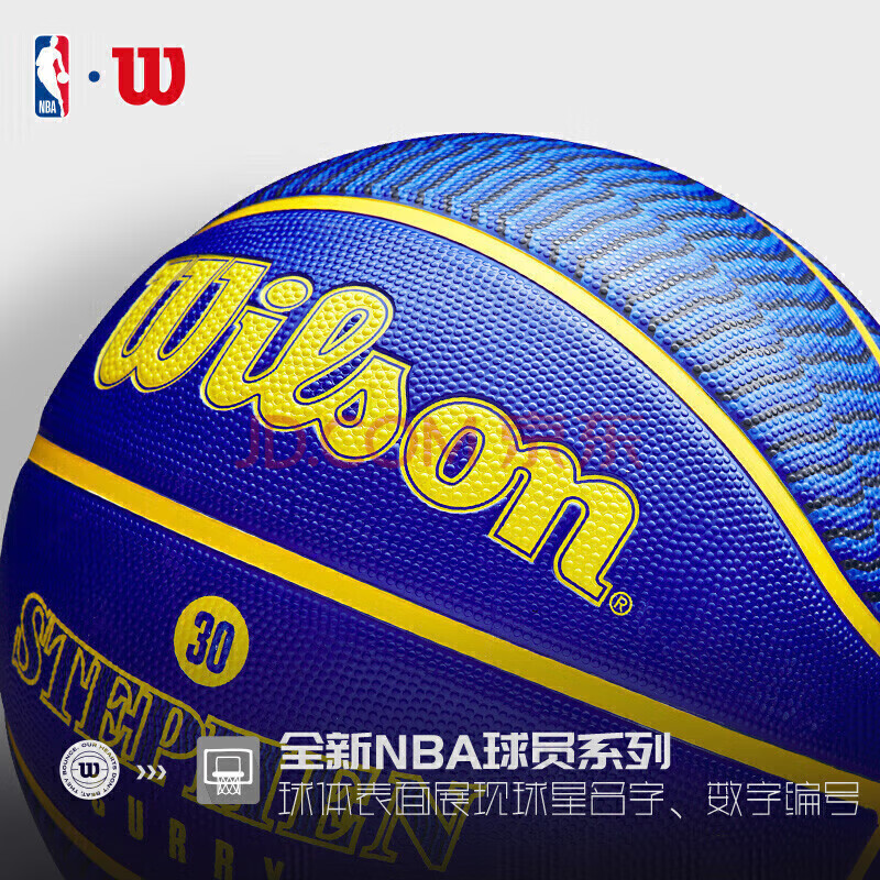 商品相册:Wilson威尔胜NBA球员系列勇士队库里联名室外比赛7号橡胶篮球花球送礼第