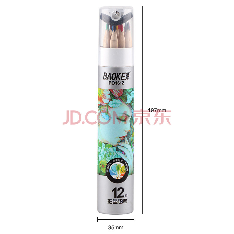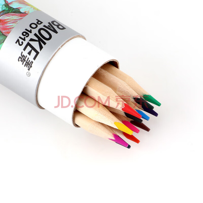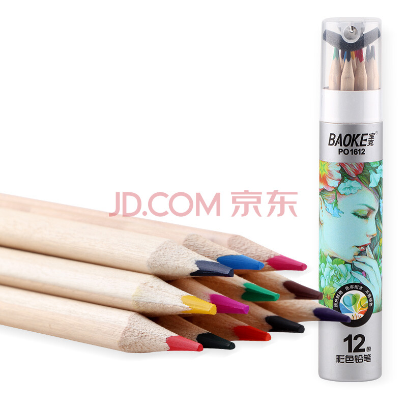商品相册:宝克(BAOKE)PO1612原木油性12色三角杆彩铅彩色铅笔填色彩笔绘画笔纸筒装第