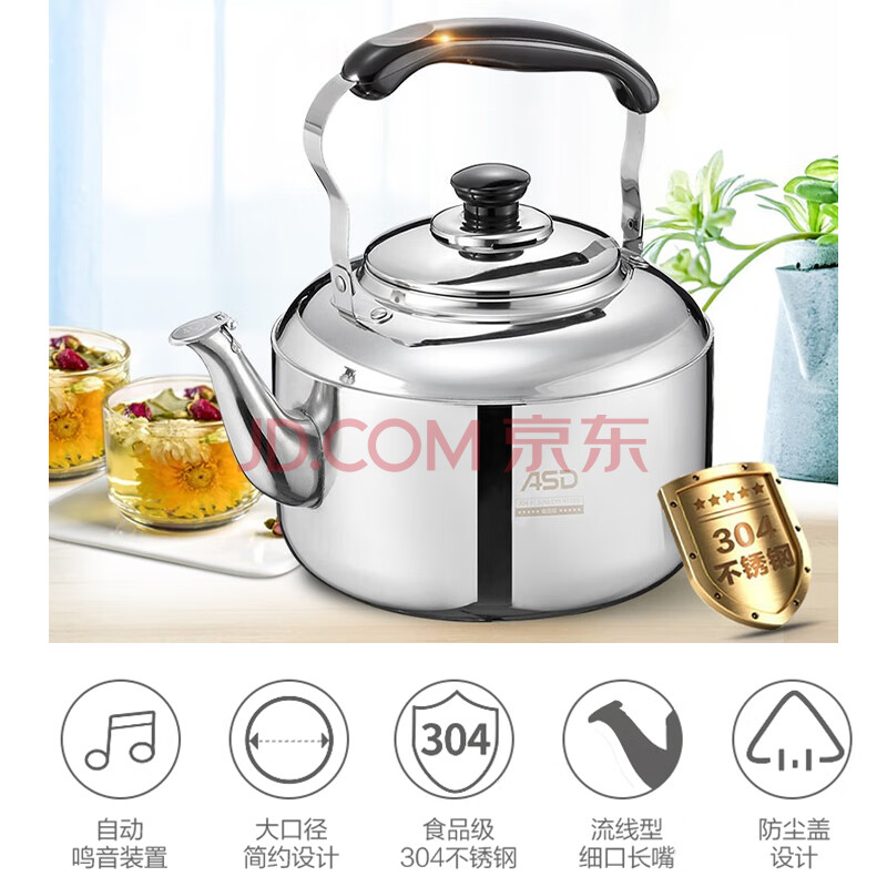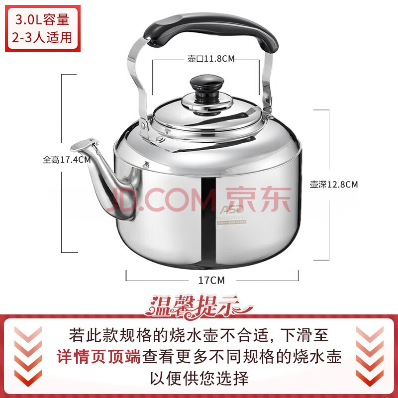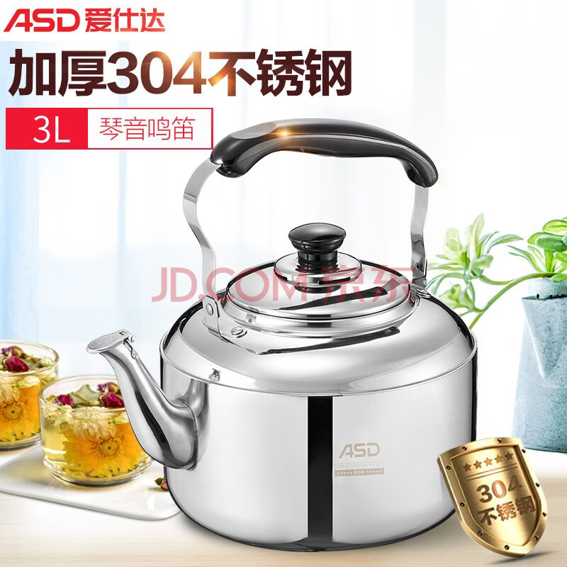 商品相册:爱仕达响水壶加厚304不锈钢家用3L鸣音烧水壶燃气电磁炉通用HS03T2WG第