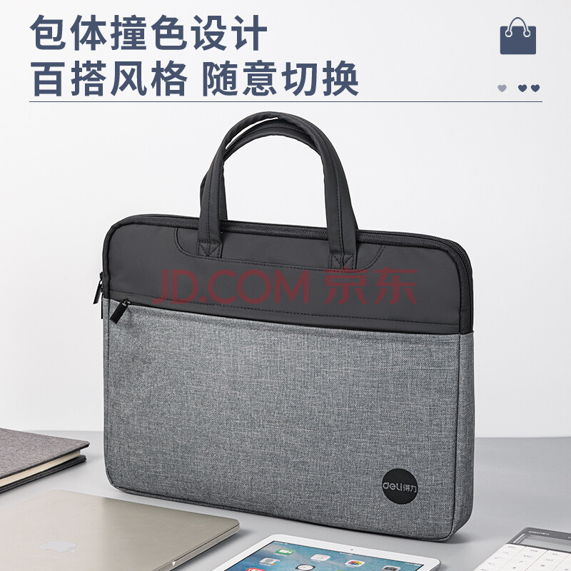 商品相册:得力(deli)公文包 办公手提袋会议包事务包 加厚大容量商务拉链袋电脑公文包 黑 第