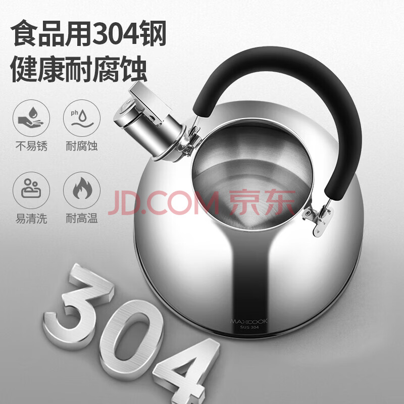 商品相册:美厨(MAXCOOK)烧水壶304不锈钢响水壶 1.5L加厚鸣音 锌合金壶嘴 MCH5480第