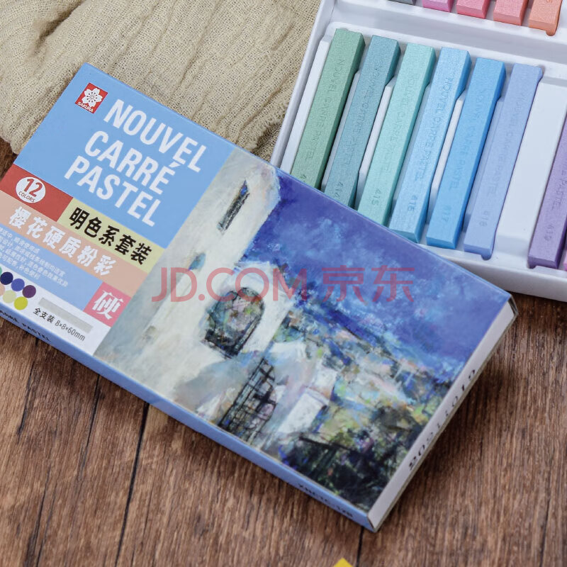 商品相册:樱花(SAKURA)色粉笔硬质粉彩24色套装(浅色珠光)彩色粉笔画棒颜料手绘素描画笔美术生画画专用写生第1张/共6