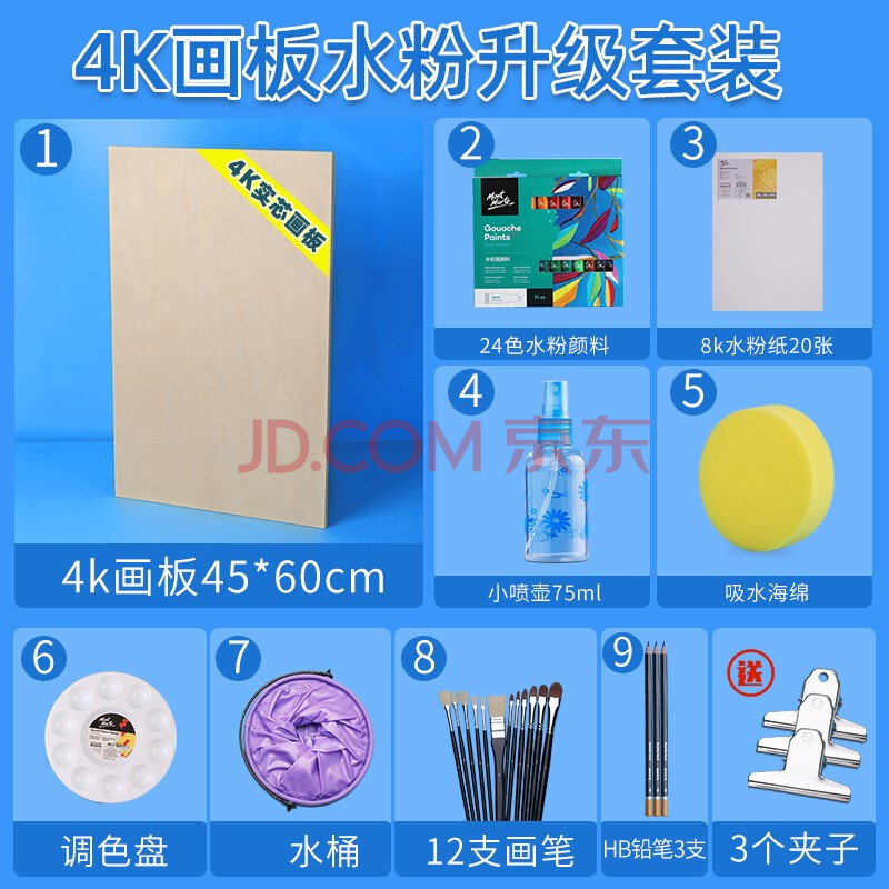 商品相册:蒙玛特(MontMarte)4k画板水粉颜料套装美术画板铅笔水粉纸水粉笔调色盘水桶夹子海绵VSX-WD-TZ-024第