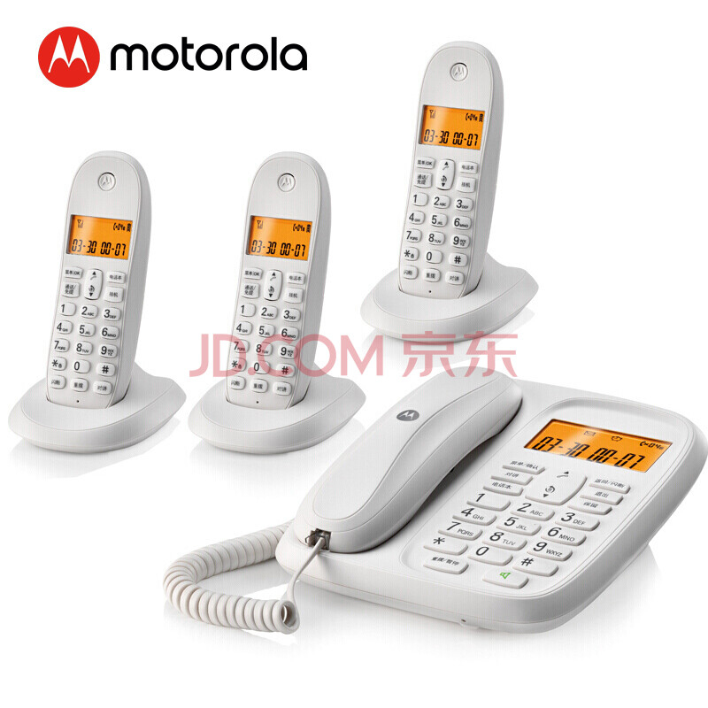 商品相册:摩托罗拉(Motorola)数字无绳电话机 无线座机 子母机一拖三 办公家用 中文显示 双免提套装CL103C(白色)第