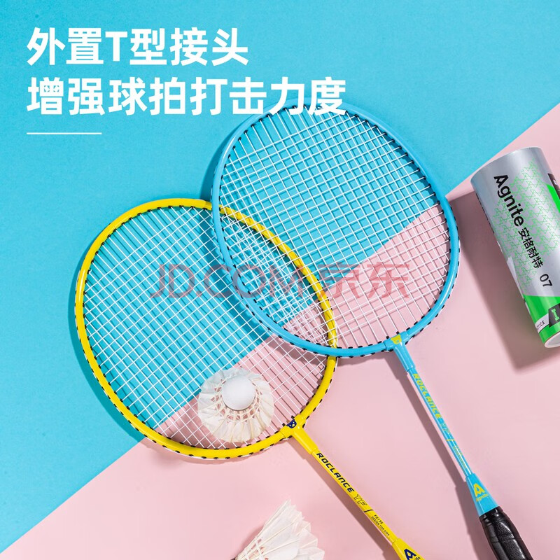 商品相册:得力(deli) 儿童羽毛球拍耐磨高弹初学亲子送2羽球 娱乐玩具羽拍第