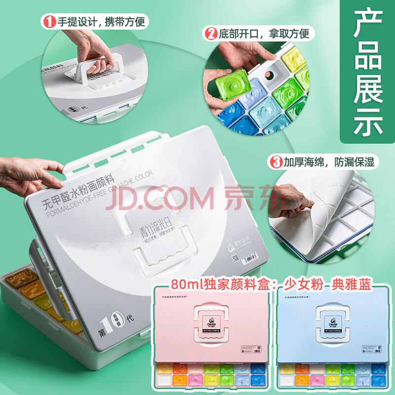 商品相册:青竹画材(CHINJOO)无甲醛健康水粉组合套装42格80ml100ml12件套儿童初学者美术绘画果冻颜料美术写生第