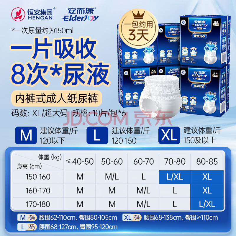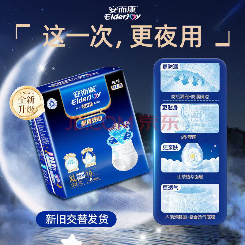 商品相册:安而康(Elderjoy)夜用安心成人拉拉裤XL60片臀围>110cm内裤式成人纸尿裤夜间安睡第