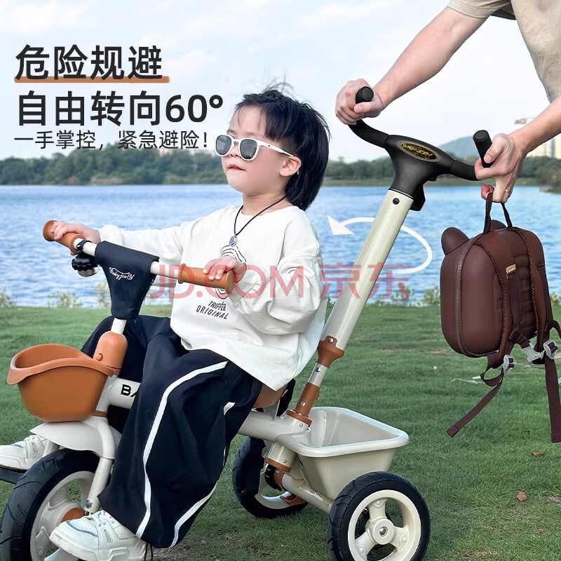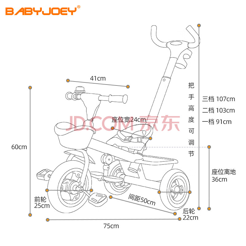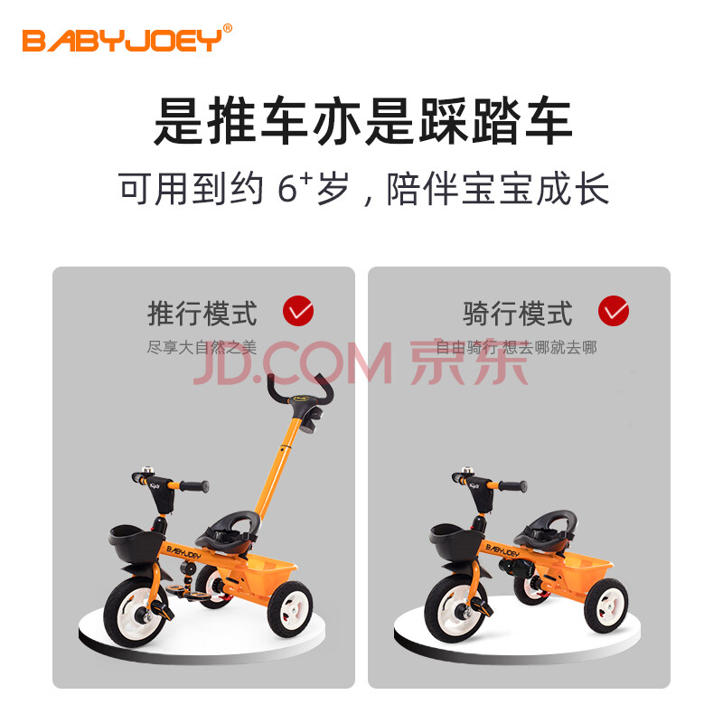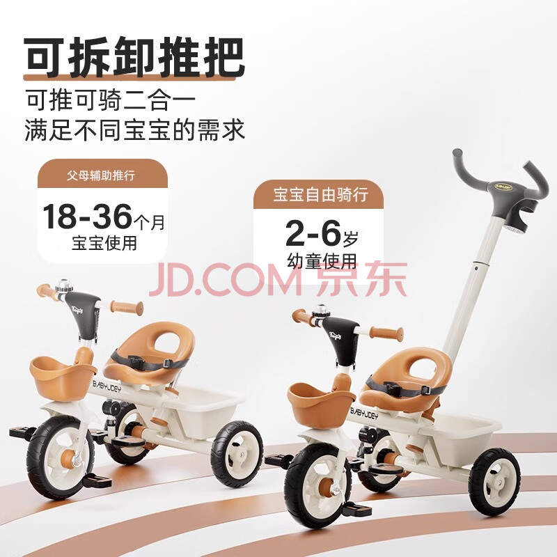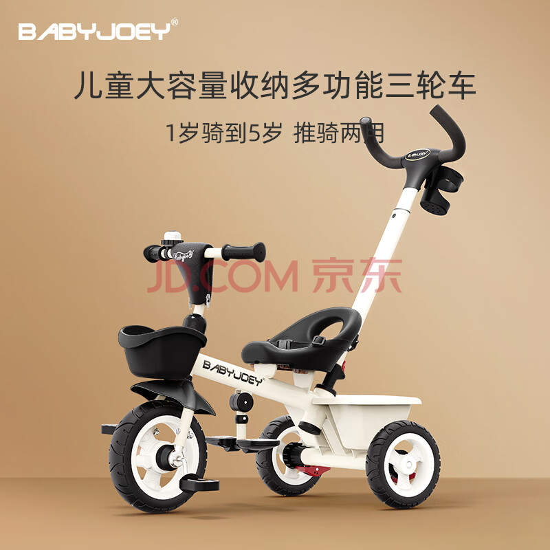 商品相册:BABYJOEY英国儿童三轮车脚踏车1-3-5岁 简易自行车多功能手推车小蜜蜂白色第1张/共9