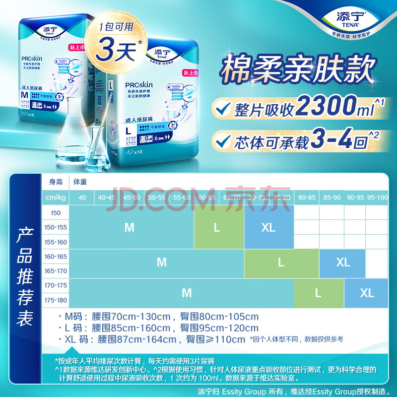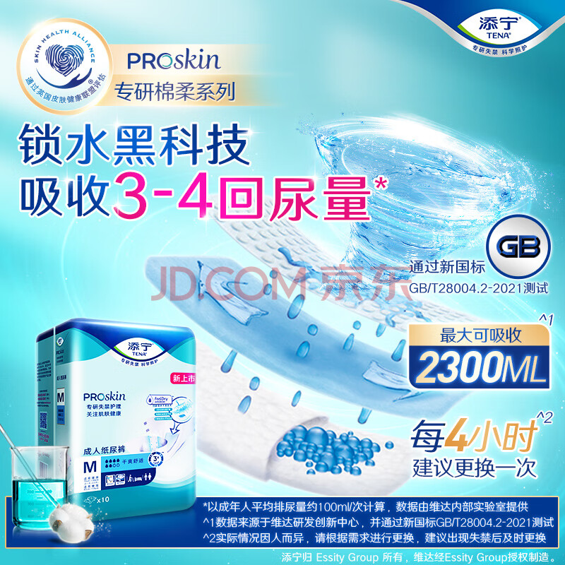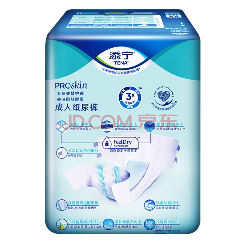 商品相册:添宁(TENA)PROskin干爽成人纸尿裤M10片(腰围:70-130cm)产妇老年人尿不湿第1张/共7