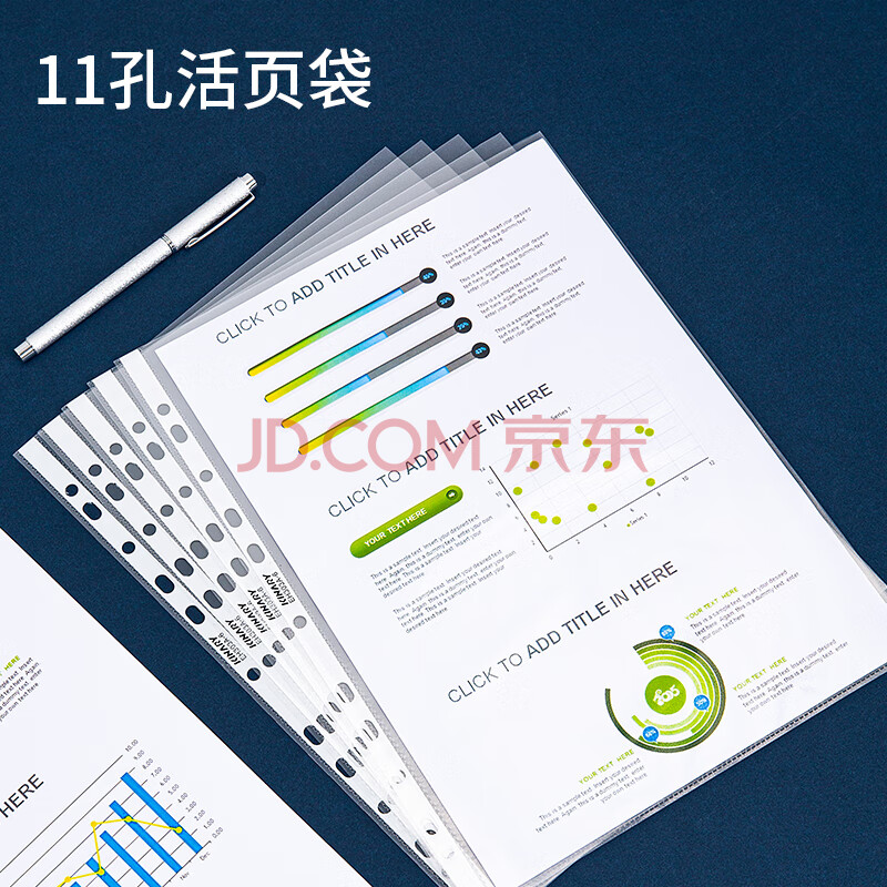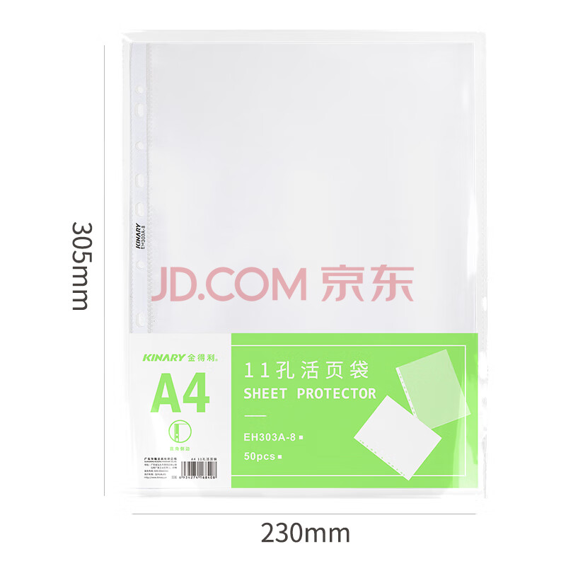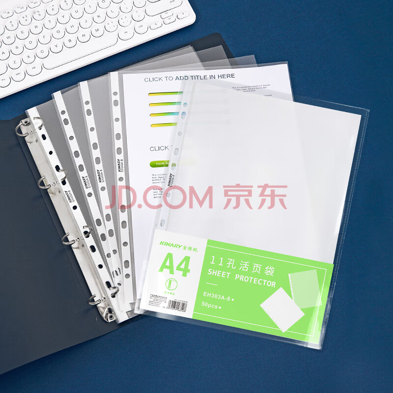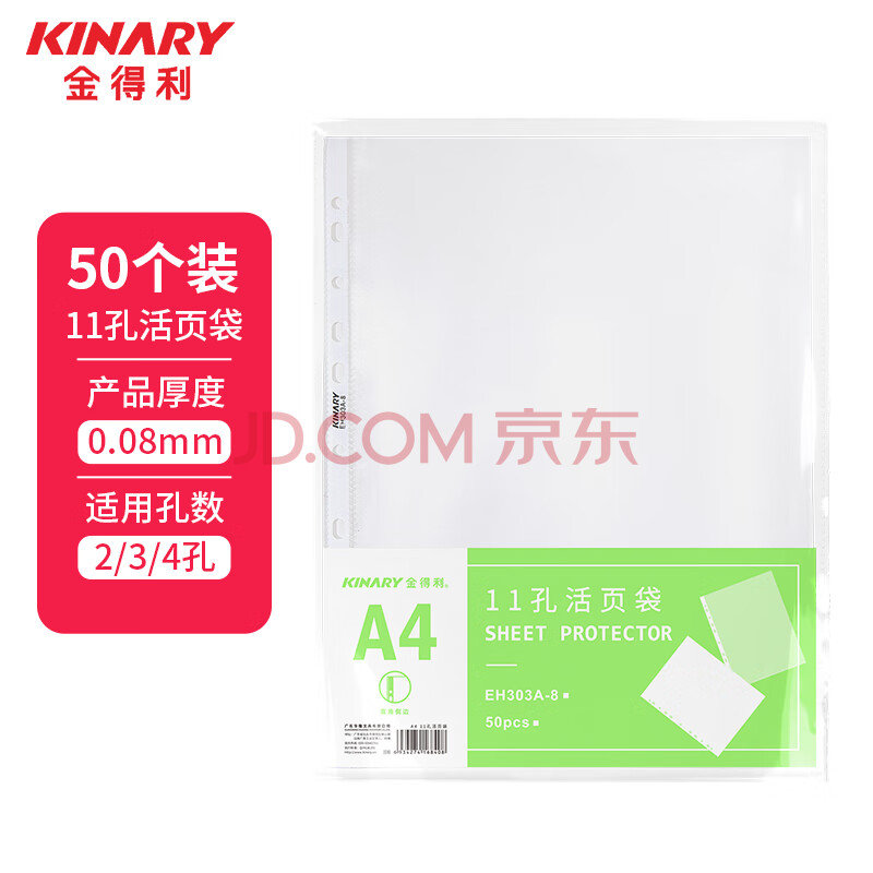 商品相册:金得利50个装升级加厚11孔活页袋a4通用打孔文件袋透明资料活页替芯插页袋子适用2/3/4孔文件夹EH303A-8第