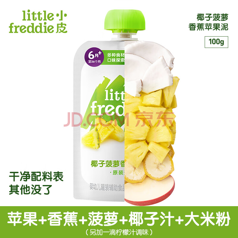 商品相册:小皮(Little Freddie)椰子菠萝香蕉果泥 婴儿水果泥 欧洲原装进口宝宝辅食泥100g*1袋第