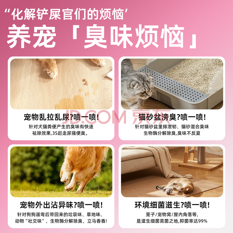 商品相册:KONOKO宠物除臭剂猫咪猫砂抑菌除螨去尿味狗狗除臭喷雾臭味生物酶分解剂第