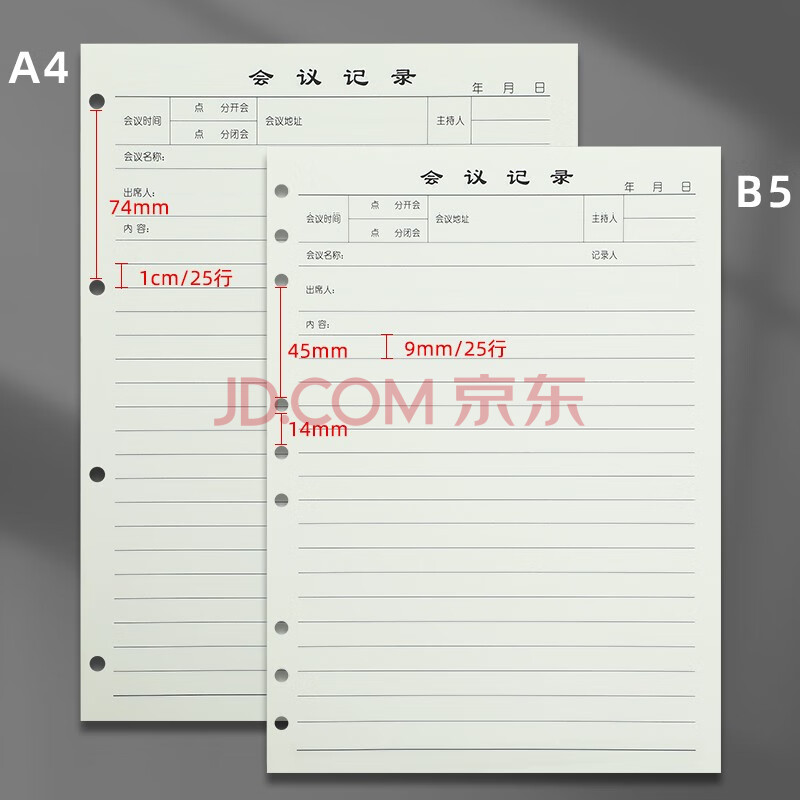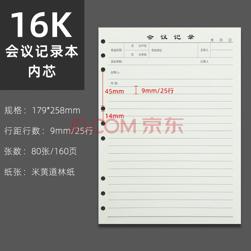 商品相册:嘉然恒 活页会议记录笔记本子替换内芯 9孔16K仅内芯80张160页/本第1张/共6