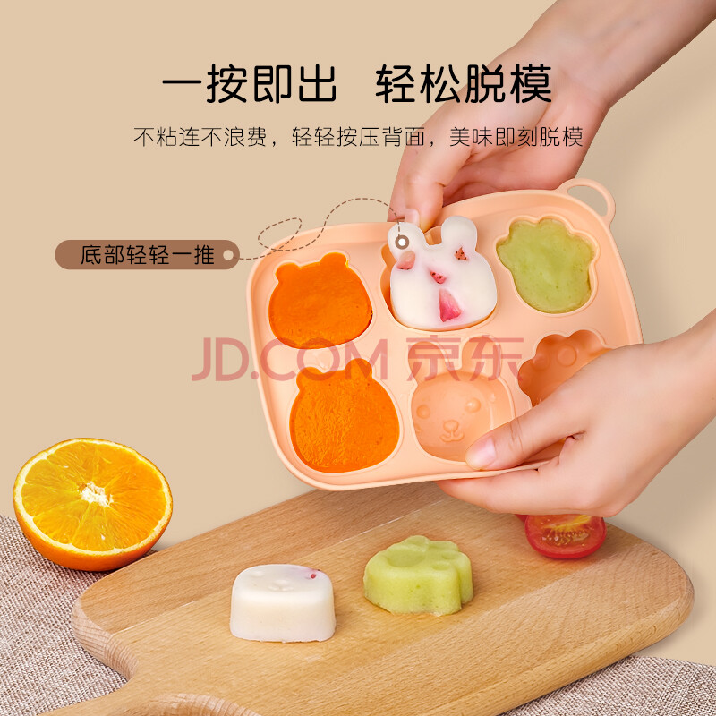 商品相册:英氏(YEEHOO)宝宝辅食模具蒸糕模可蒸婴儿童硅胶冰格密封分格装冷冻盒 浅橙色第