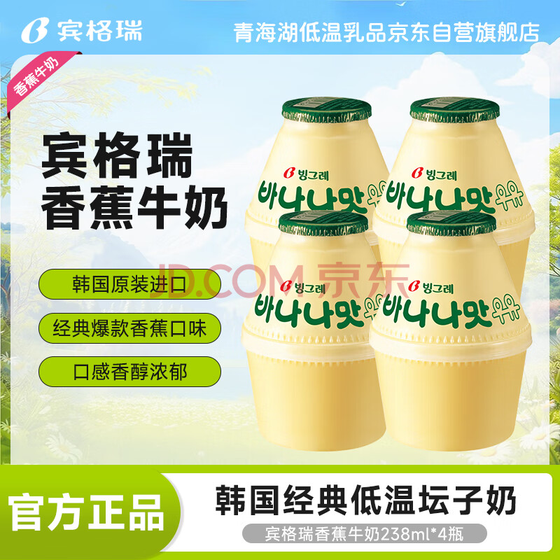 商品相册:宾格瑞(BINGGRAE)香蕉牛奶238ml*4瓶 韩国进口坛子奶 早餐奶 儿童奶 学生奶 低温奶第
