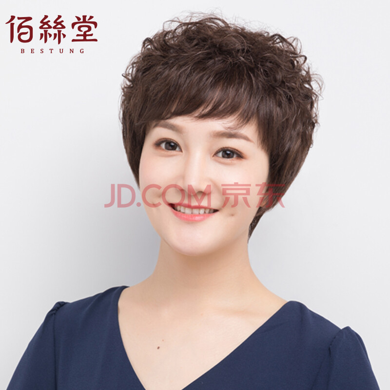 商品相册:佰丝堂假发女短发真人发丝假发套女真发自然全头套中老年妈妈短卷发遮白第