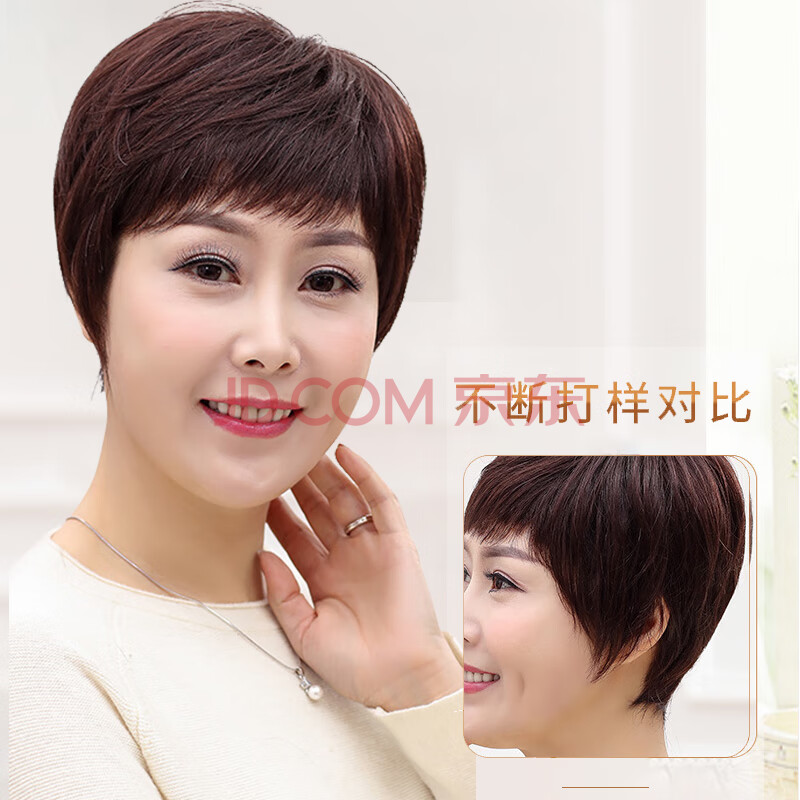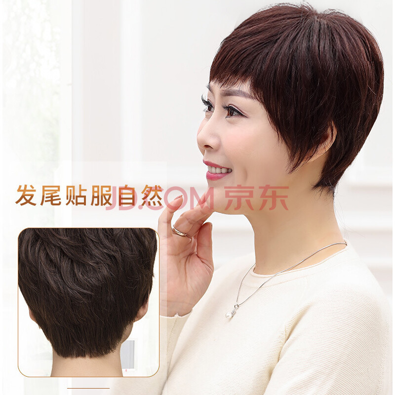商品相册:慕斯佰美假发女真发中老年短发妈妈假发套真人发丝全头套 自然黑第1张/共8
