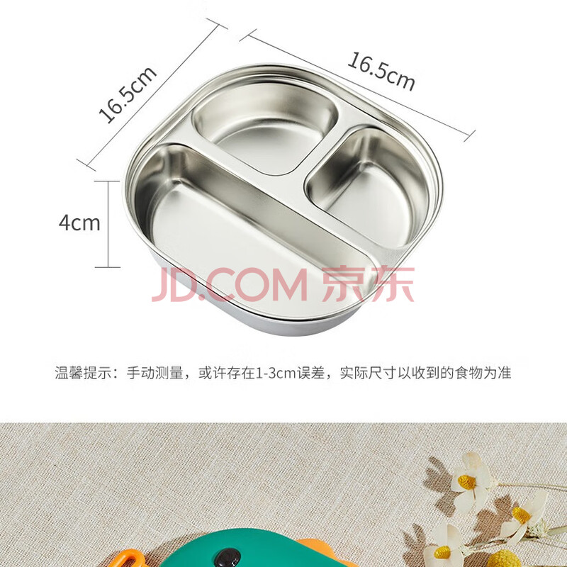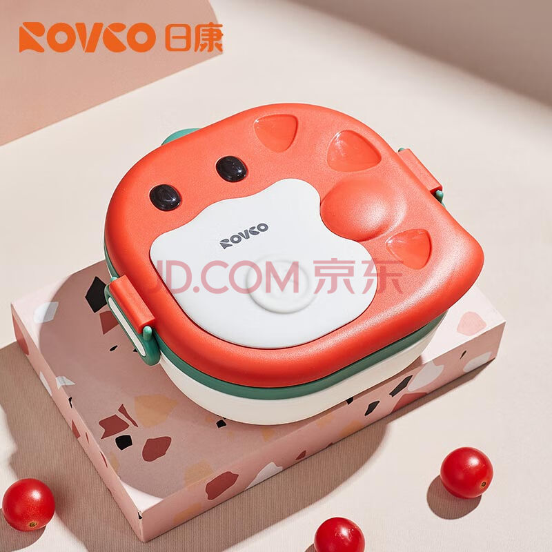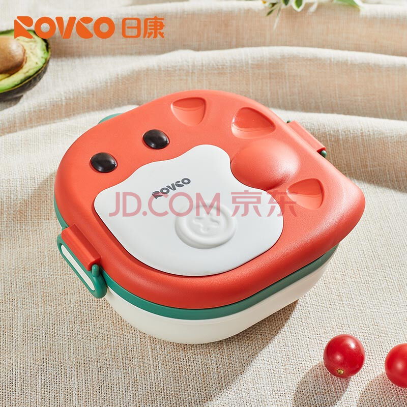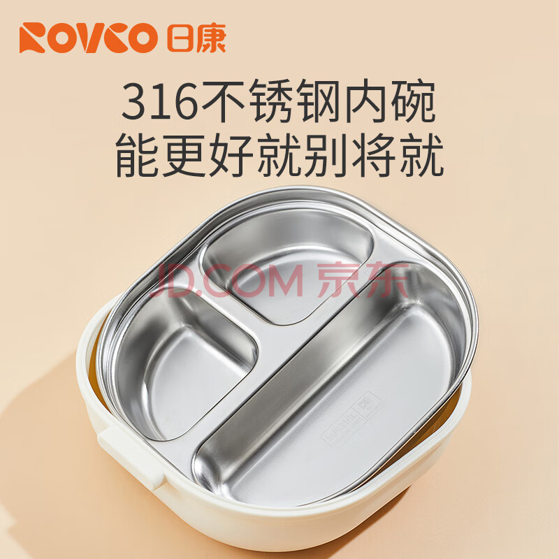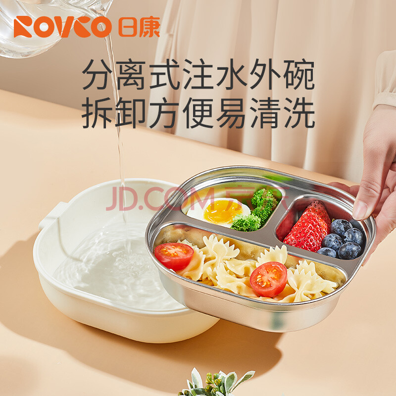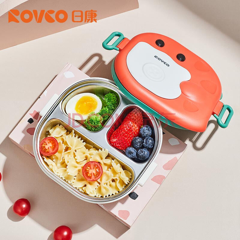 商品相册:日康保温饭盒 儿童分格餐盘辅食碗 不锈钢小学生饭盒 C1016朱红第