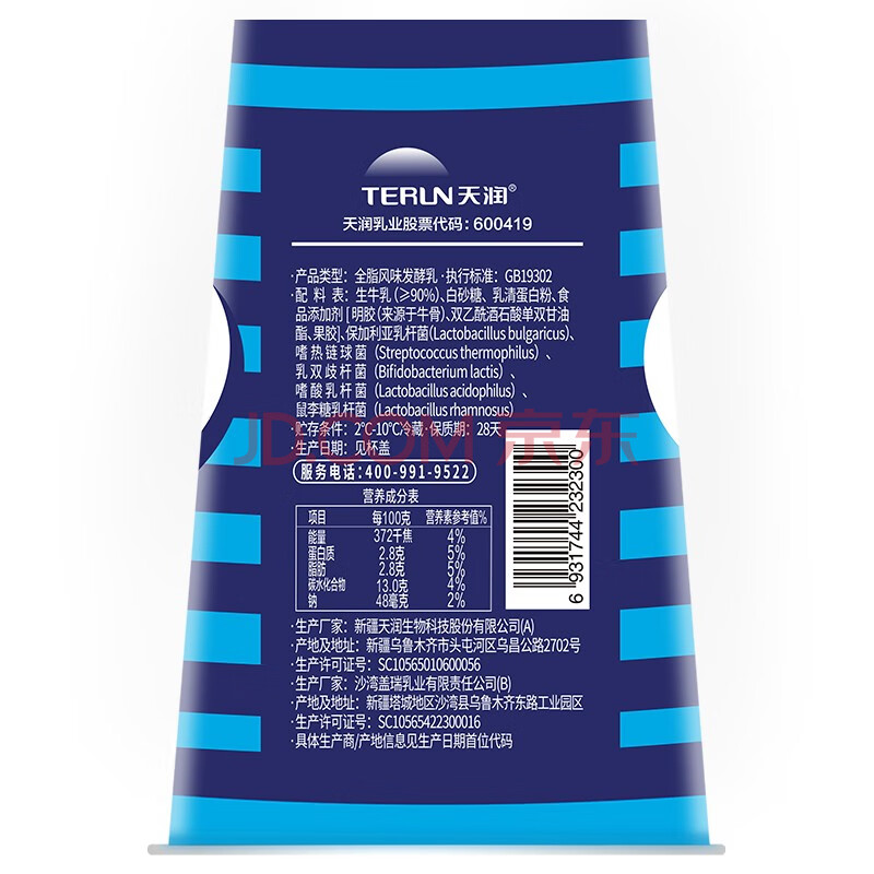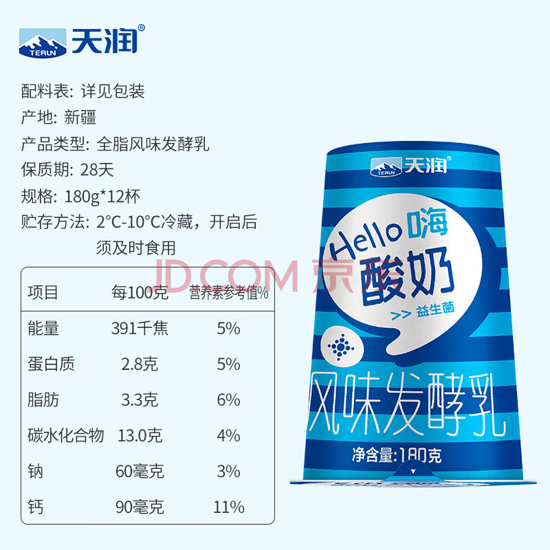 商品相册:天润(TERUN)新疆特产 经典原味低温酸奶杯装 180g*12杯第1张/共8