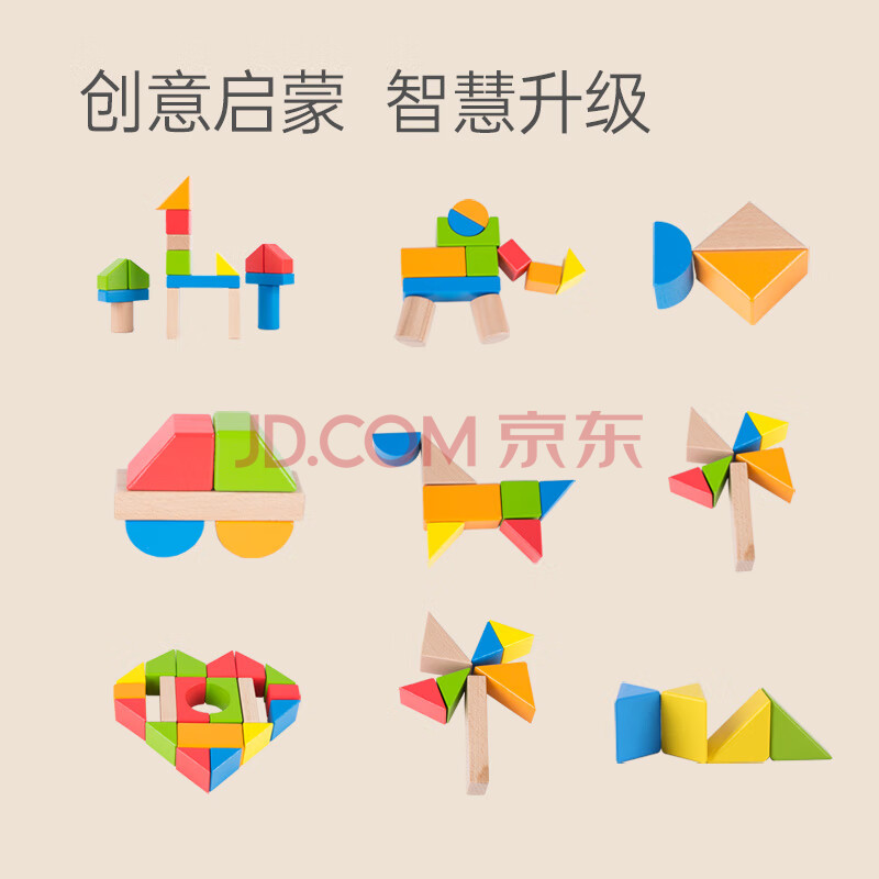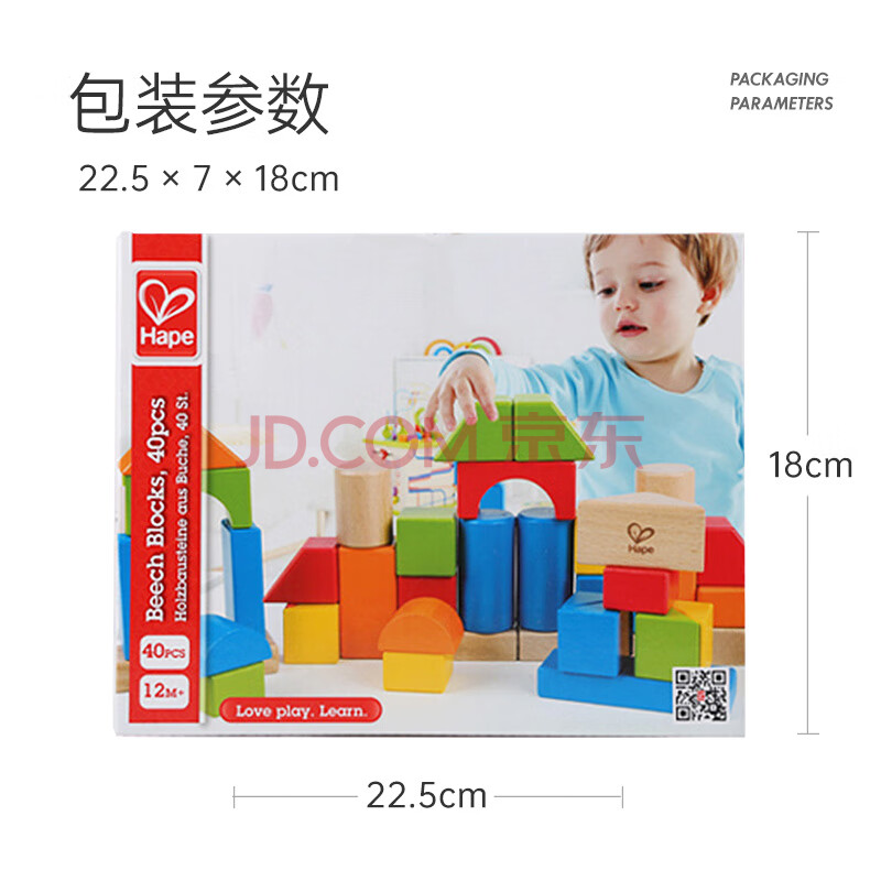 商品相册:Hape(德国)婴幼儿童拼搭木质积木玩具40粒彩虹积木宝宝生日礼物E8321第