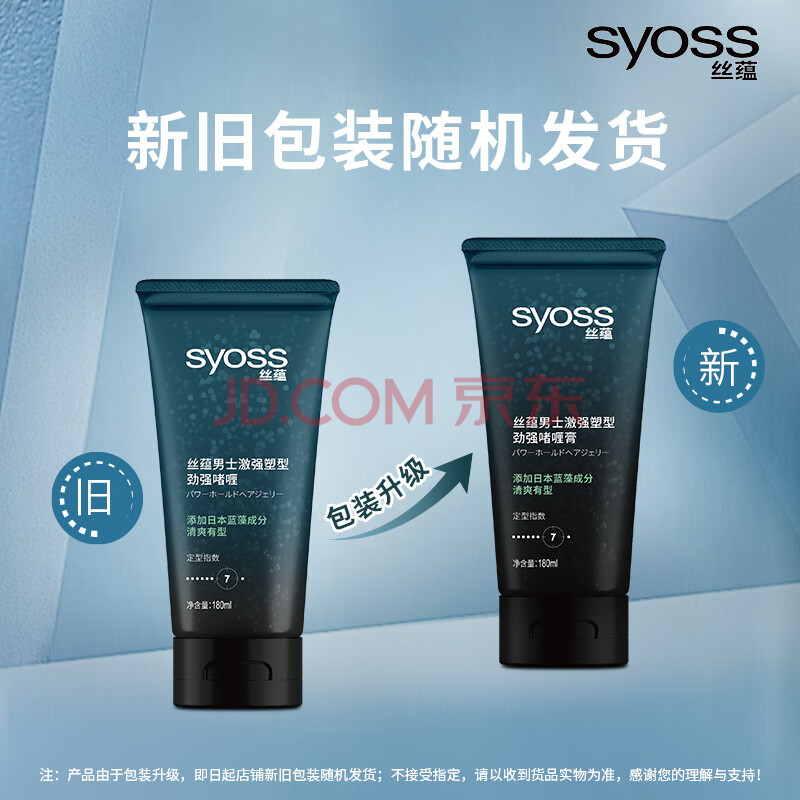 商品相册:丝蕴(syoss)男士激强塑型劲强啫喱膏180ml持久定型第