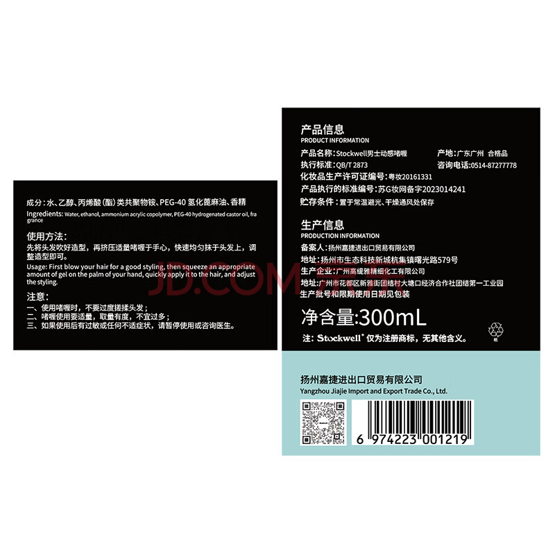 商品相册:Stockwell男士定型啫喱膏大背头碎发整理啫喱水300ml发胶定型蓬松持久保湿第
