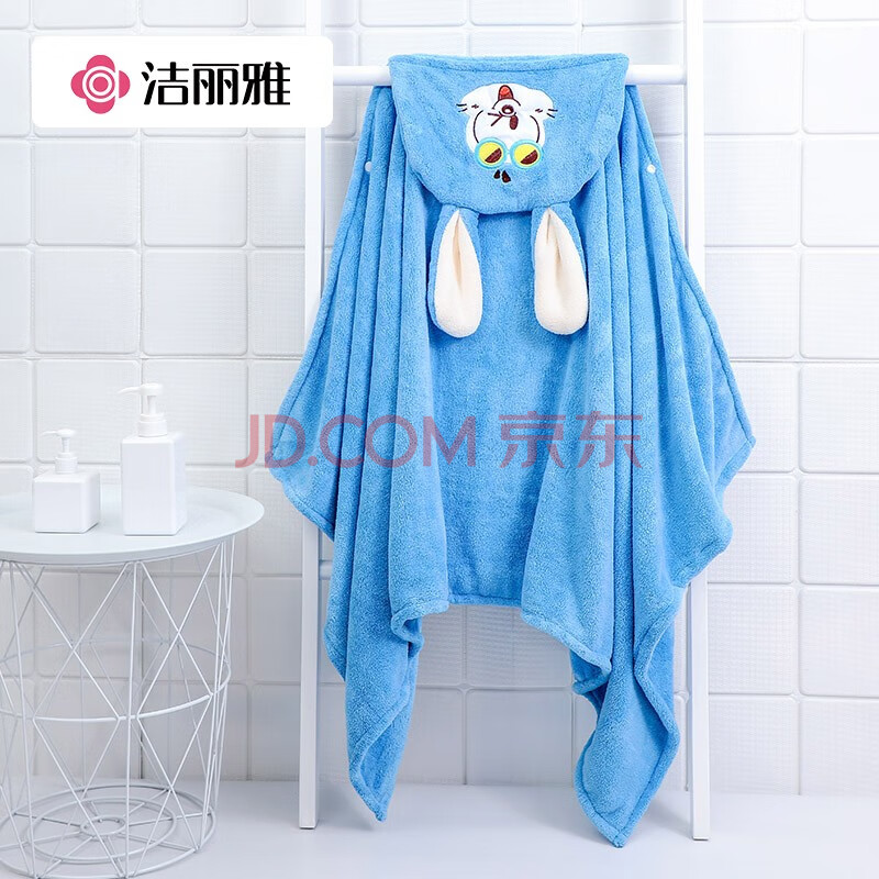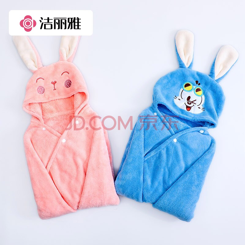 商品相册:洁丽雅儿童浴袍珊瑚绒速干婴儿宝宝洗澡浴巾带帽加厚卡通粉中号140*70cm第