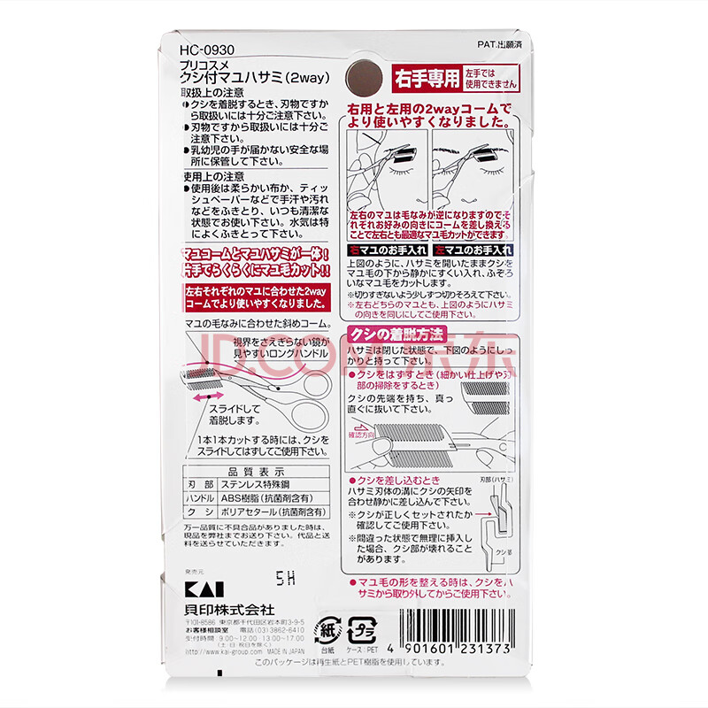 商品相册:貝印(KAI)日本进口眉毛剪刀(带可拆卸双向眉刷梳)修眉塑眉修型第1张/共4