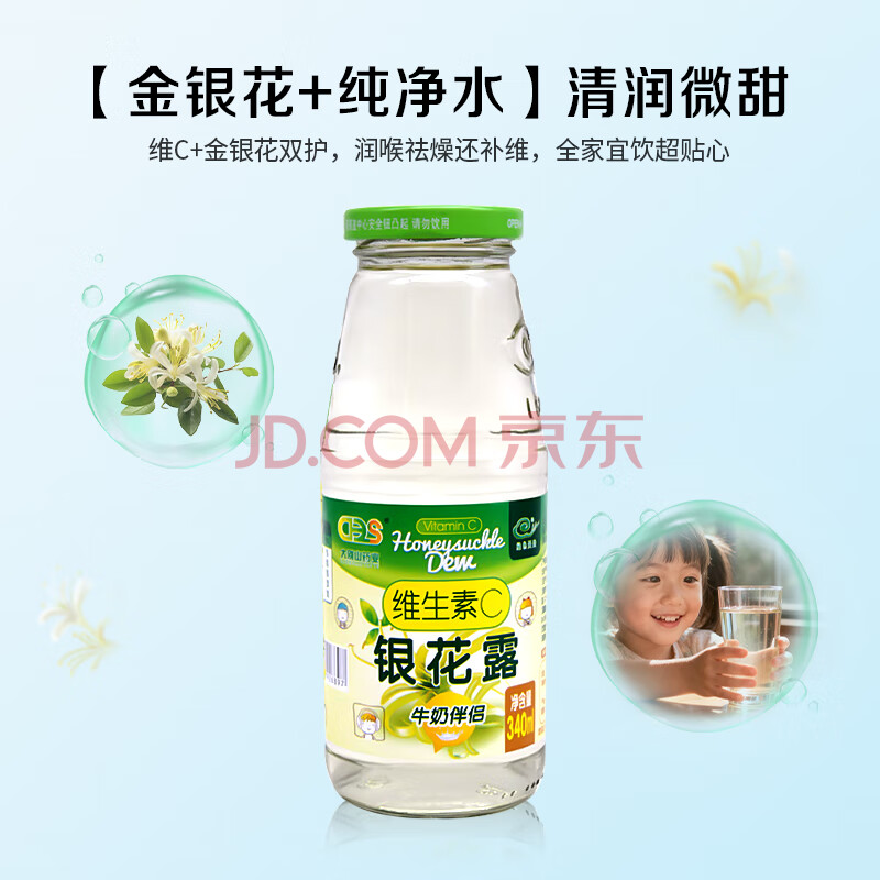 商品相册:绿色天空维C金银花露低糖饮料340ml*12瓶清清宝金银花凉茶儿童饮料整箱第1张/共8