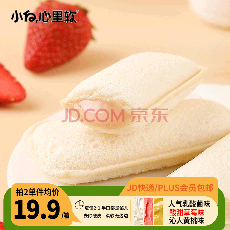 商品相册:小白心里软夹心小口袋面包(草莓酸奶味)420g/箱 面包蛋糕早餐吐司零食代餐第